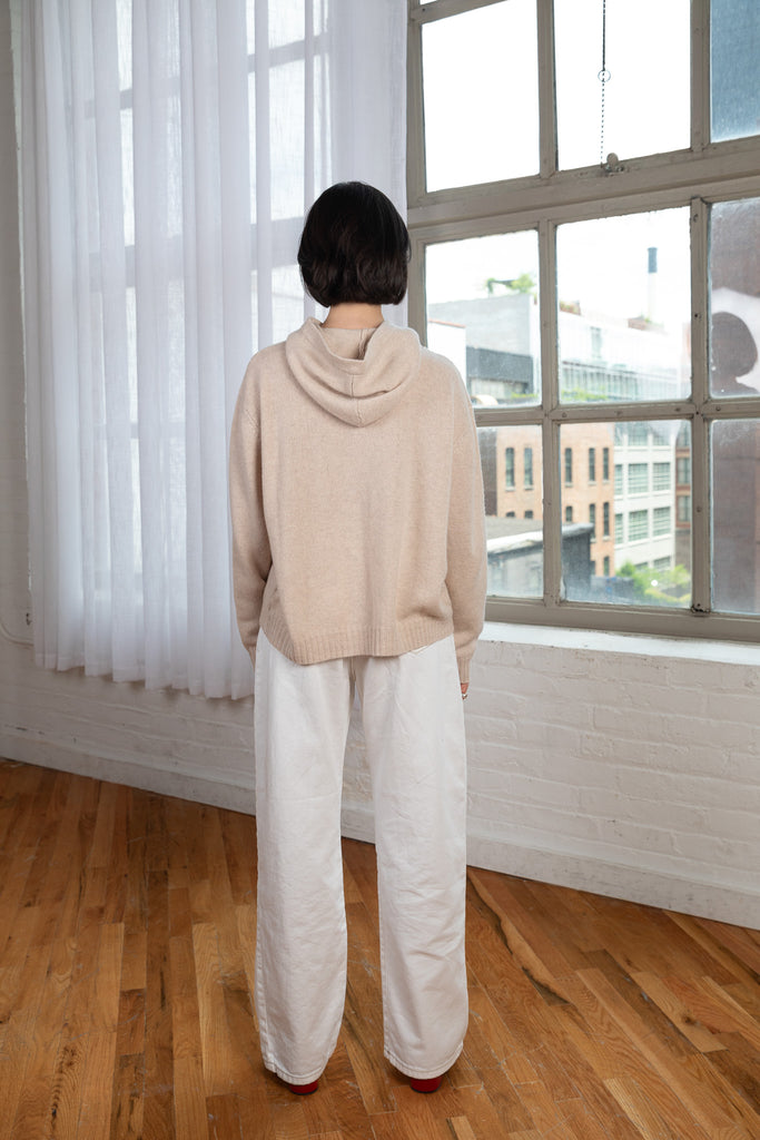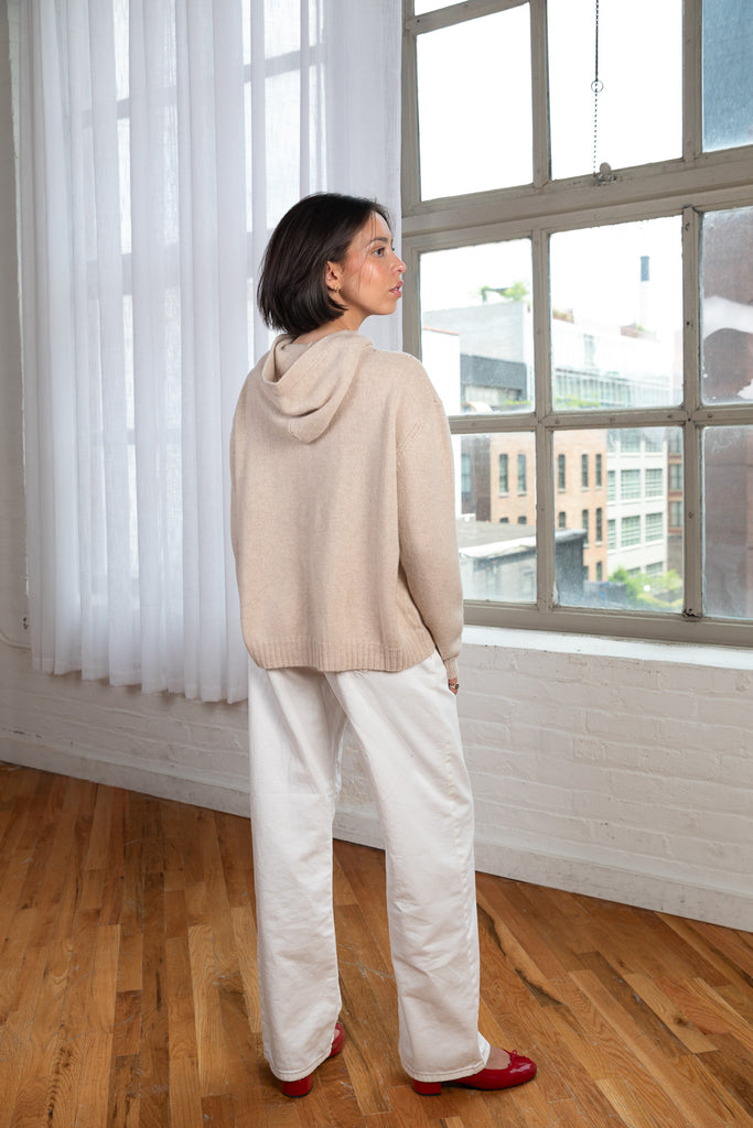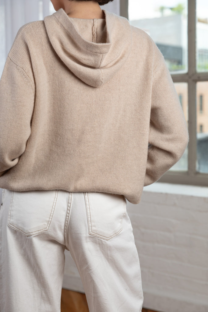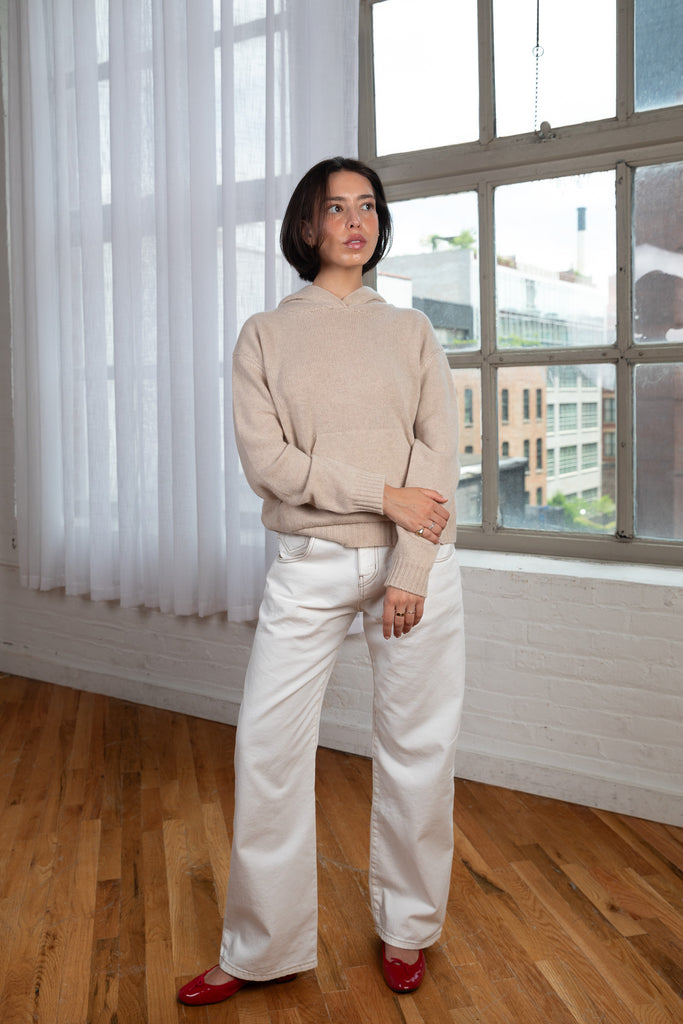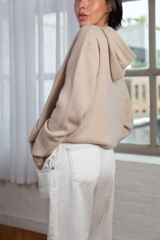 The Andrea Oversized Hoodie in Chai is made using a soft and lightweight cashmere. Designed to have an oversized fit with a front pocket, it's an elevated take on the classic hoodie. Pair it with The Roxie jean for a street style look.