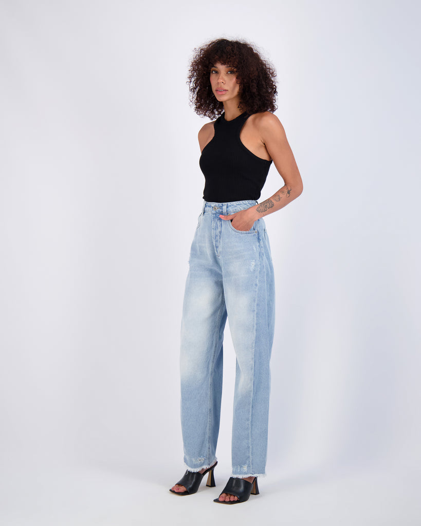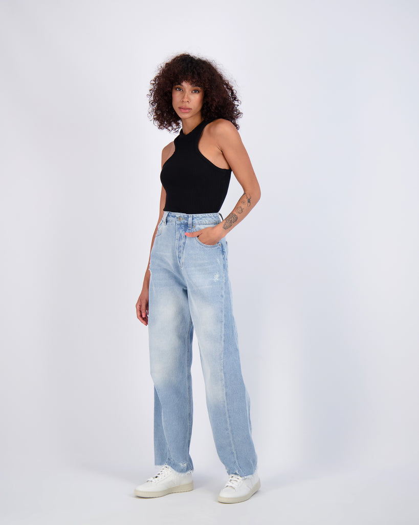 Paloma Curved Wide Leg in Washed Blue